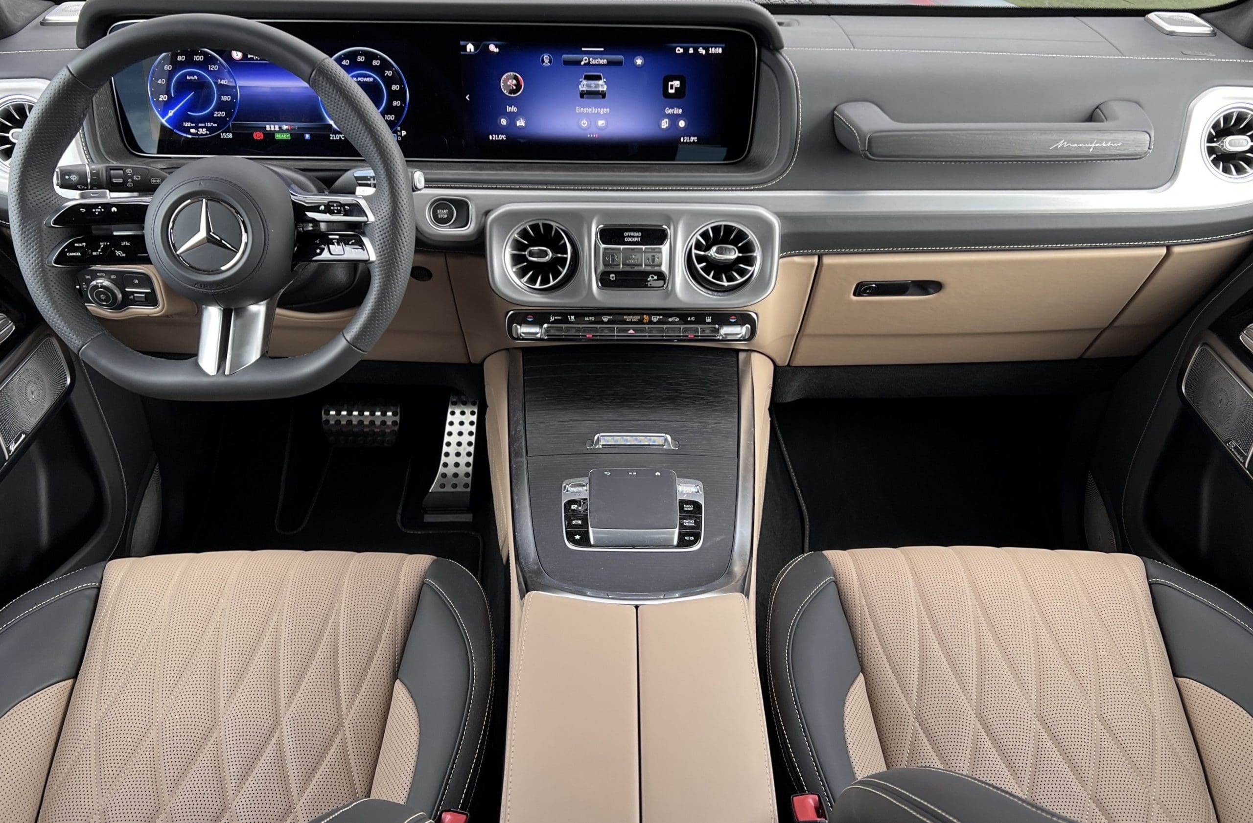 • Innenausstattung: MANUFAKTUR Vollleder Nappa, 2-farbig Beige